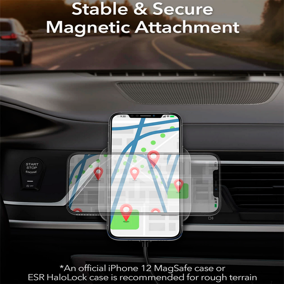 Автотримач із бездротовою зарядкою ESR HaloLock Magnetic Wireless Car Charger Black