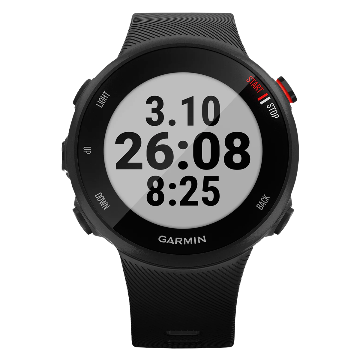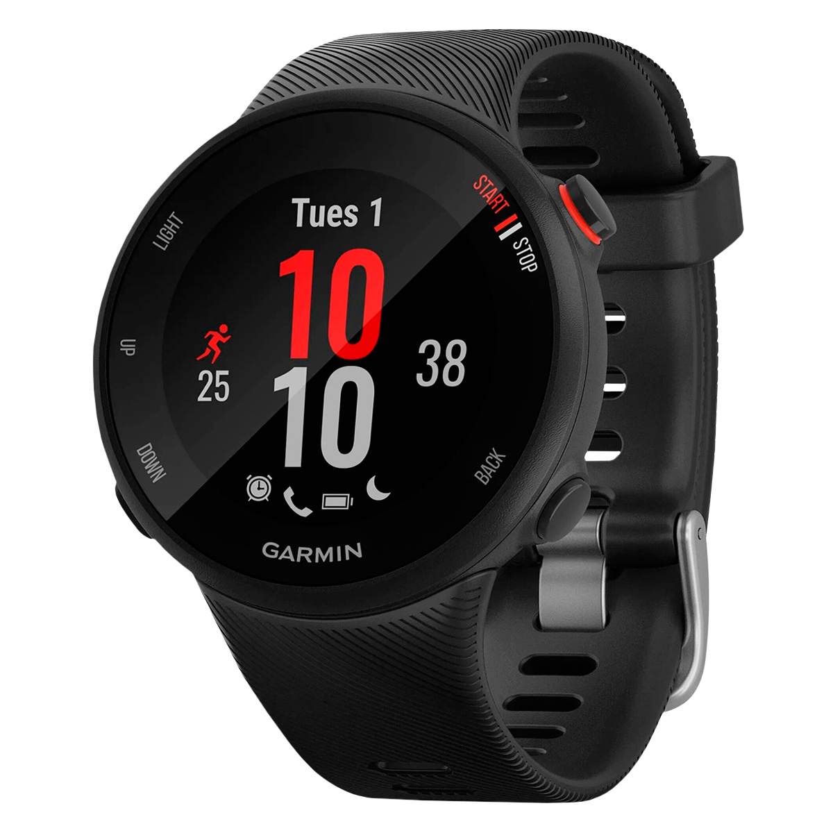 Цей простий у використанні біговий годинник ідеально підходить для щоденних пробіжок, тренувальних сесій і навіть для підготовки до забігу на 10 км, в якому вас умовили взяти участь. Вбудований GPS -приймач відстежує місце розташування і видає точні дані, включаючи відстань, темп та інтервали. Інтуїтивний кнопковий інтерфейс дозволяє зручно відмічати початок нового кола або зупиняти таймер навіть якщо на руках є крапельки поту. Крім того, Forerunner 45 цілодобово вимірює частоту пульсу на зап'ястку.