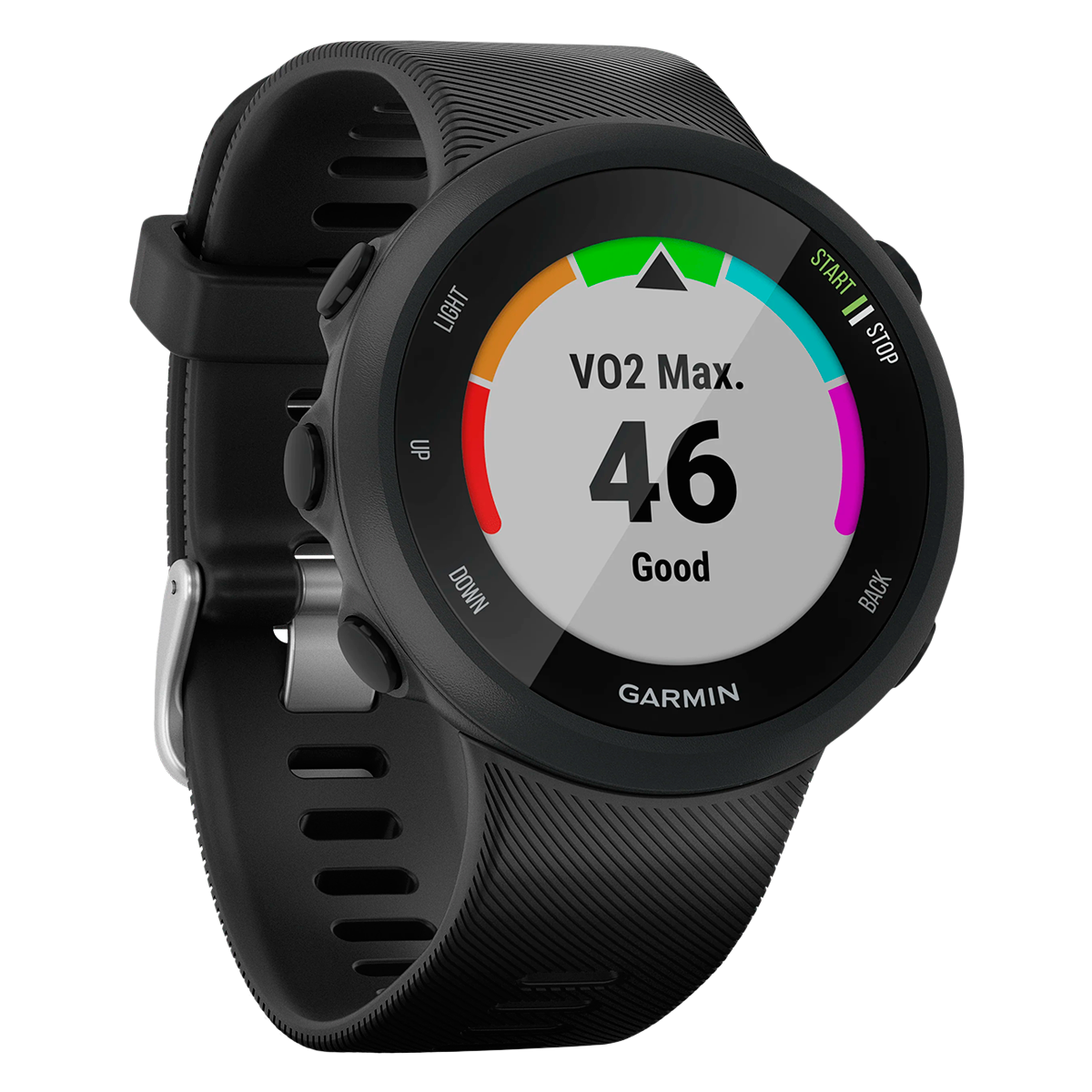 Біговий годинник Forerunner 45s Black пропонують безліч функцій для відстежування спортивних занять і стану здоров'я. Носіть годинник цілодобово для спостереження за кількістю кроків, відстанню і спаленими калоріями за день, а також за параметрами сну. Крім того, в пристрої передбачені функції для цілодобового відстежування рівня стресу. Якщо рівень стресу починає рости, ви можете виділити декілька хвилин і скористатися таймером для розслабляючих дихальних вправ, щоб заспокоїти розум і тіло. Інструмент Body Battery™ допоможе оптимізувати енергію вашого організму. Ця функція збирає дані для виміру кількості енергії, накопиченого на даний момент, щоб ви могли планувати періоди активності та відпочинку впродовж усього дня.