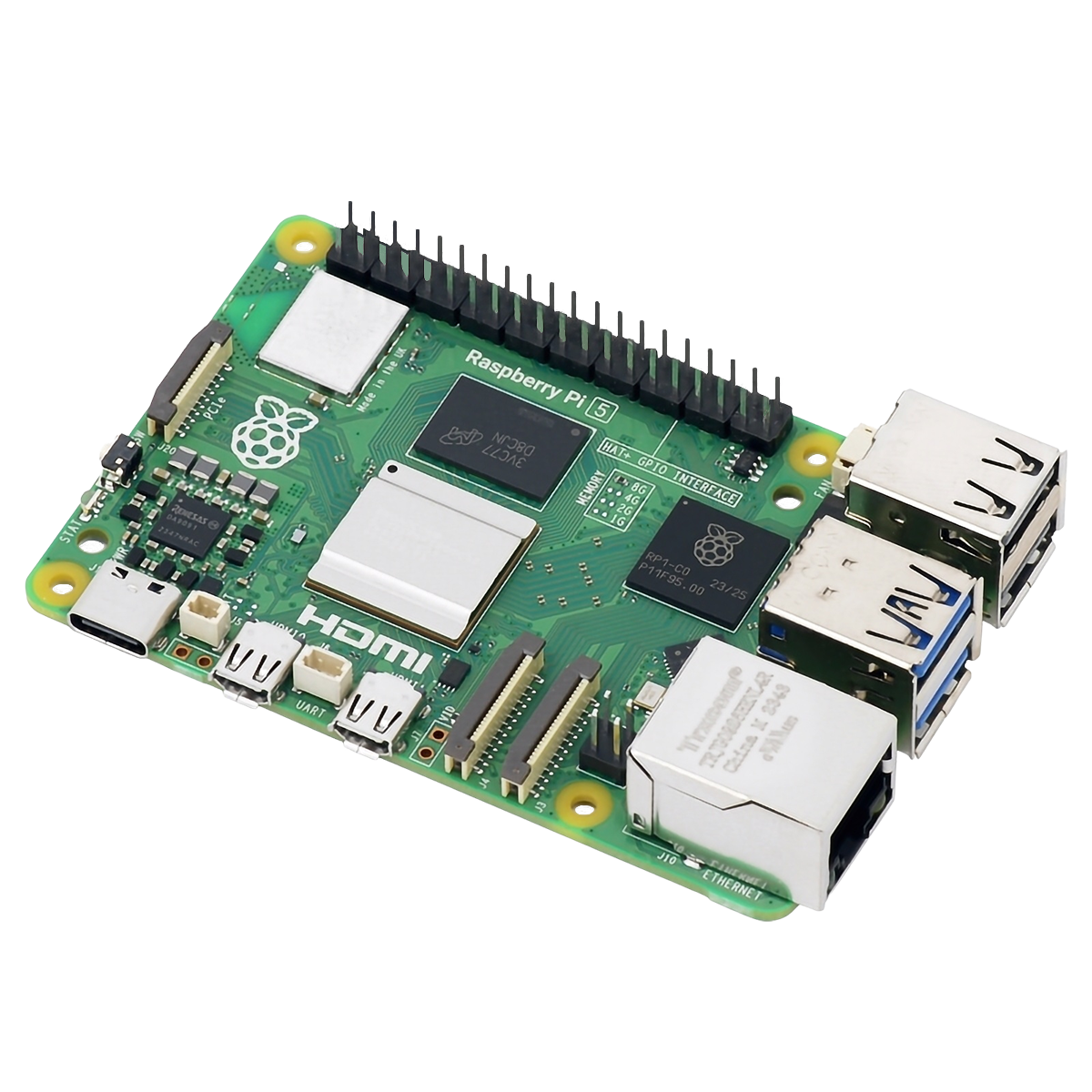 Raspberry Pi 5 базується на оновленому процесорі і включає в себе різні порти та інтерфейси для підключення різноманітних пристроїв, таких як монітори, камери, сенсори і багато інших. Завдяки 64-розрядному чотирьохядерному процесору Arm Cortex-A76, що працює на частоті 2,4 ГГц, Raspberry Pi 5 забезпечує збільшення продуктивності ЦП у 2-3 рази порівняно з Raspberry Pi 4.