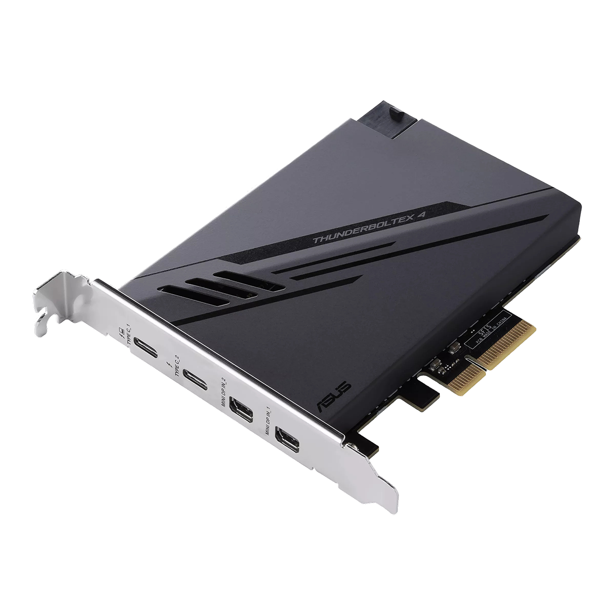 Плата расширения ASUS ThunderboltEX 4 – это контроллер высокоскоростного периферийного интерфейса Thunderbolt 4 с пропускной способностью 40 Гбит/с, возможностью последовательного подключения к пяти устройствам к одному порту и режиму видеовыхода по протоколу DisplayPort 1.4. Физически интерфейс реализован в виде двух оборотных разъемов USB-C, совместимых с периферией стандарта USB4. Контроллер можно использовать для подзарядки ноутбуков и мобильных гаджетов мощностью до 100 Вт.