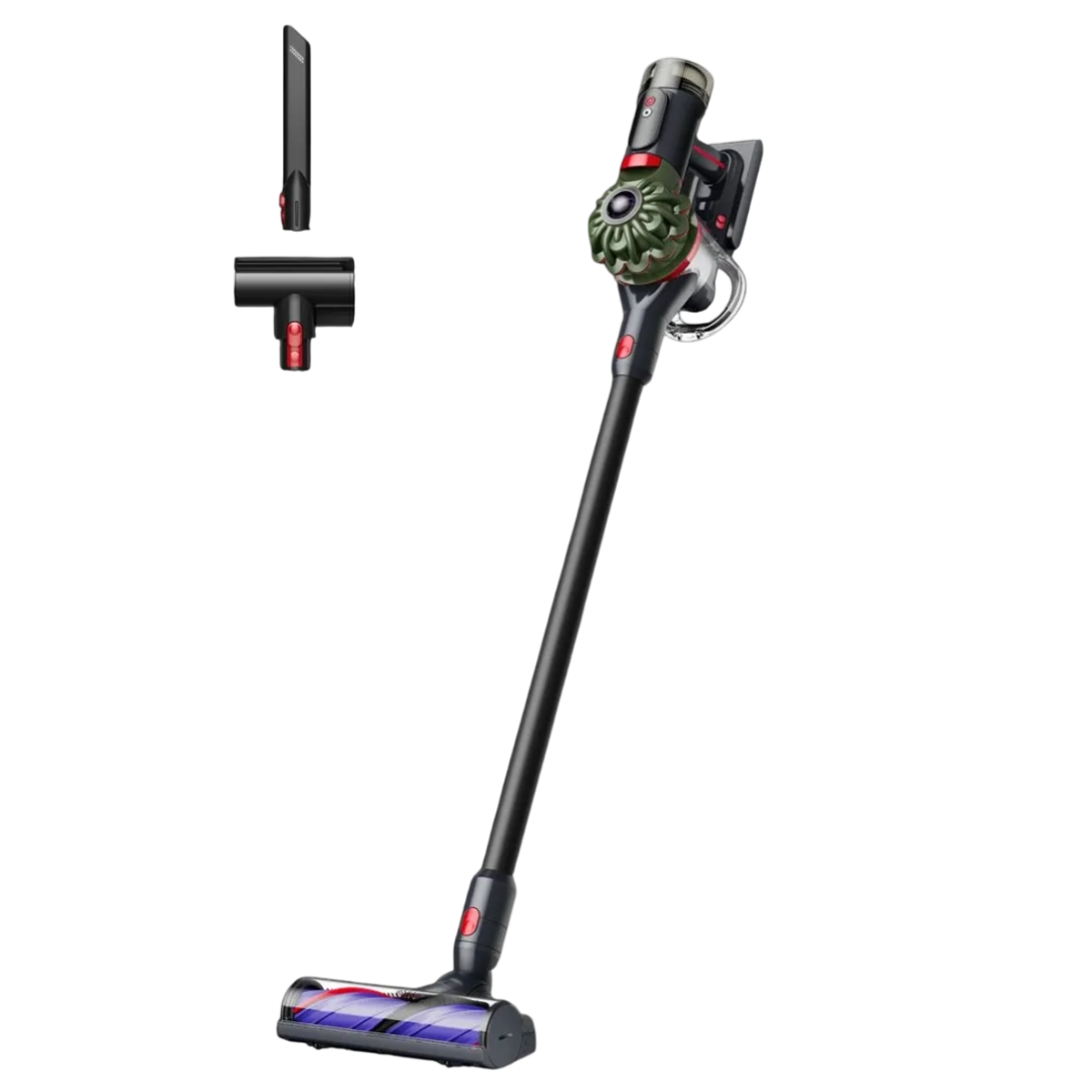 Dyson V8 Cyclone 2025 отличается компактной конструкцией и малым весом, что значительно облегчает уборку под мебелью, на лестнице или в узких пространствах. Пылесос легко трансформируется в ручной формат, позволяя быстро очистить мебель, полки, салон или труднодоступные поверхности. Продуманный баланс и удобная ручка обеспечивают комфорт даже при длительном использовании.