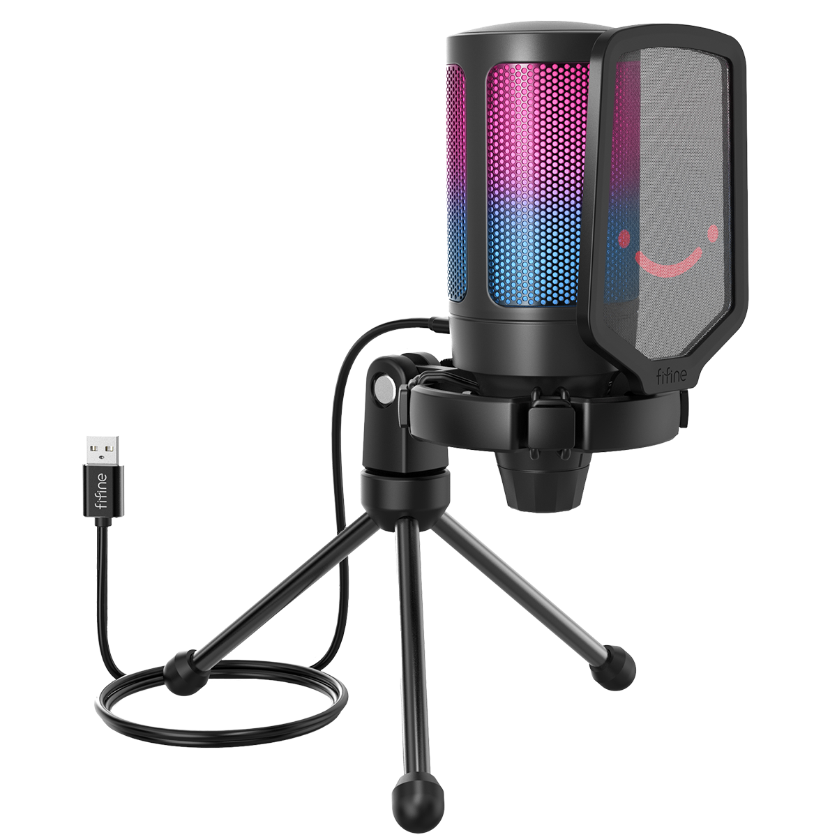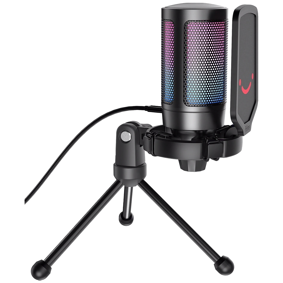 С помощью RGB-подсветки вы сможете быстро определить, что микрофон готов к работе: после включения он начнет светиться. Во время стрима подсветка поможет создать нужное настроение, а съемный поп-фильтр с веселым смайликом не только минимизирует внешние шумы, но и заставляет лишний раз улыбнуться.