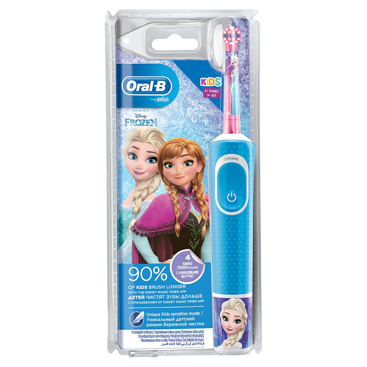 Oral-B Frozen помогает воспитать правильную привычку чистить зубы дважды в день. Щетка поддерживает мобильное приложение Disney Magic Timer, мотивирующее детей чистить дольше — в процессе на экране появляются любимые персонажи, которые "оживают", пока ребенок чистит зубы.